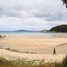 エメラルドのグラデーションと白い砂浜のコントラストが美しいですね。