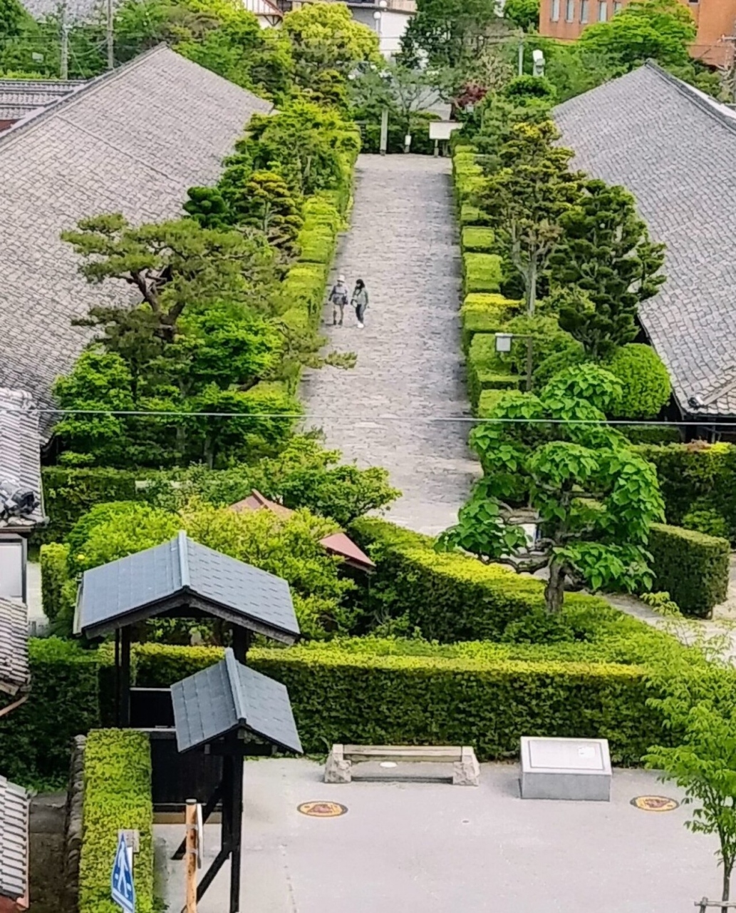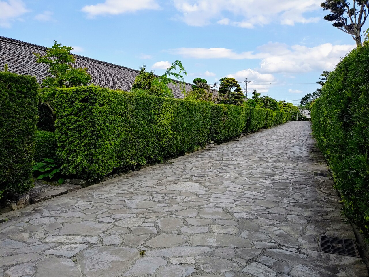 松坂城裏門跡を出た先の石畳の両側に、美しく整えられた槙の生垣を巡らした武家屋敷があり、今も生活している方が住んでいる。