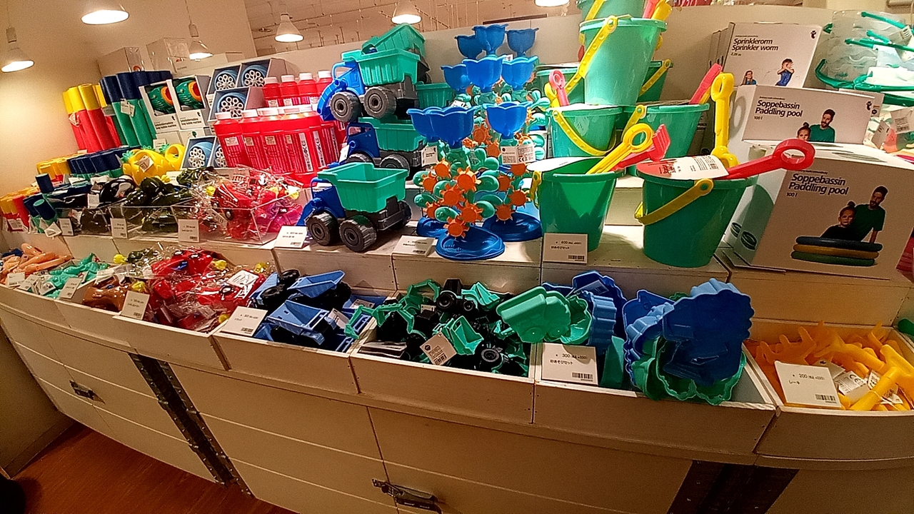 お子さんが砂遊びや水遊びを楽しく遊べるアイテムがいろいろと販売されていました。あっという間に、暑い季節の到来です。