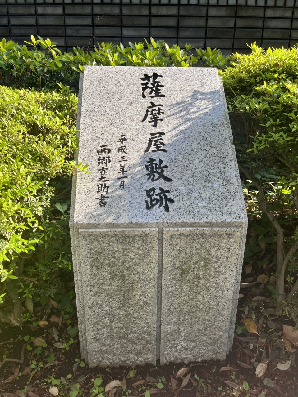 地下鉄の三田駅の出口からすぐの場所にありました。日本電気(NEC)と三井信託銀行本店の間の道路沿いにあります。今は石碑のみで、周りには高層ビルが立ち並び、当時を偲ぶ景色は無くなってしまいましたが、大門や芝公園の方まで歩くと幕末の遺跡が少し残っており、この辺りの歴史を感じることができます。