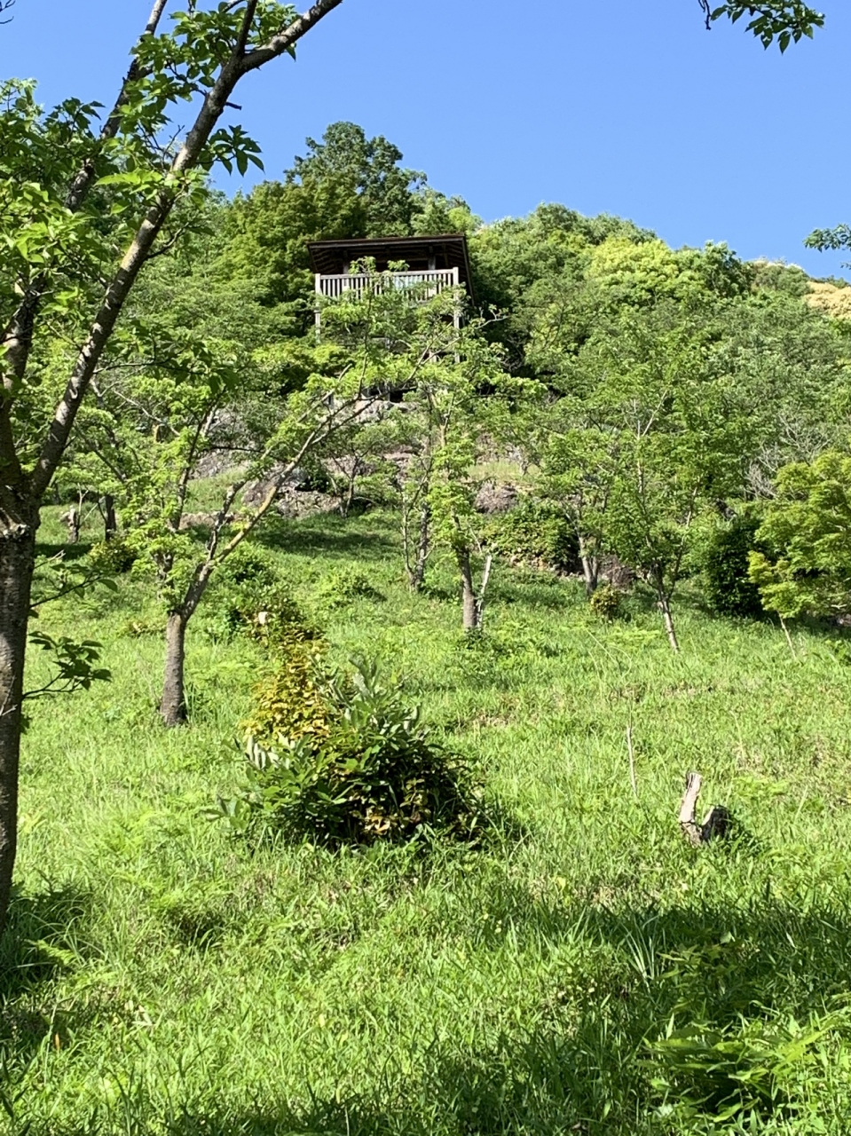 細い道の先に、保存林に囲まれて、蘭丸ふる里の森がありました。