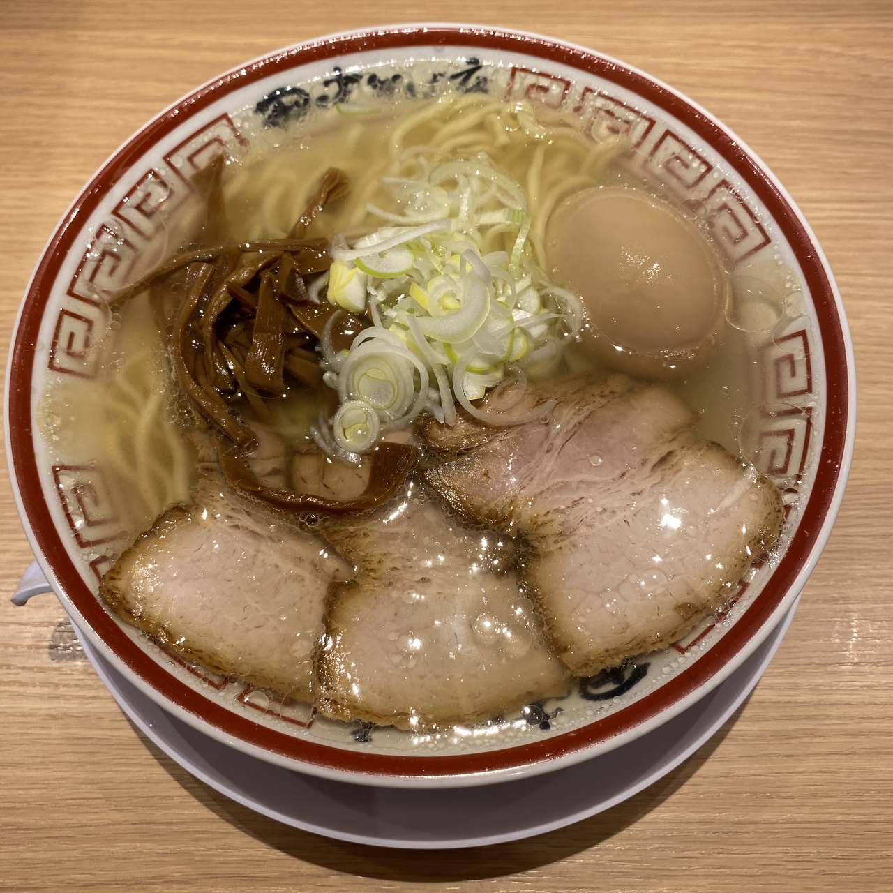 九段下含めて何店舗があるお店です。中華そばを味玉トッピングにていただきました。スープ自体はあっさりしておりますが、出汁も利いていて、その上に背脂がトッピングされているので、こってりのようでああっさりでおいしくいただけました。