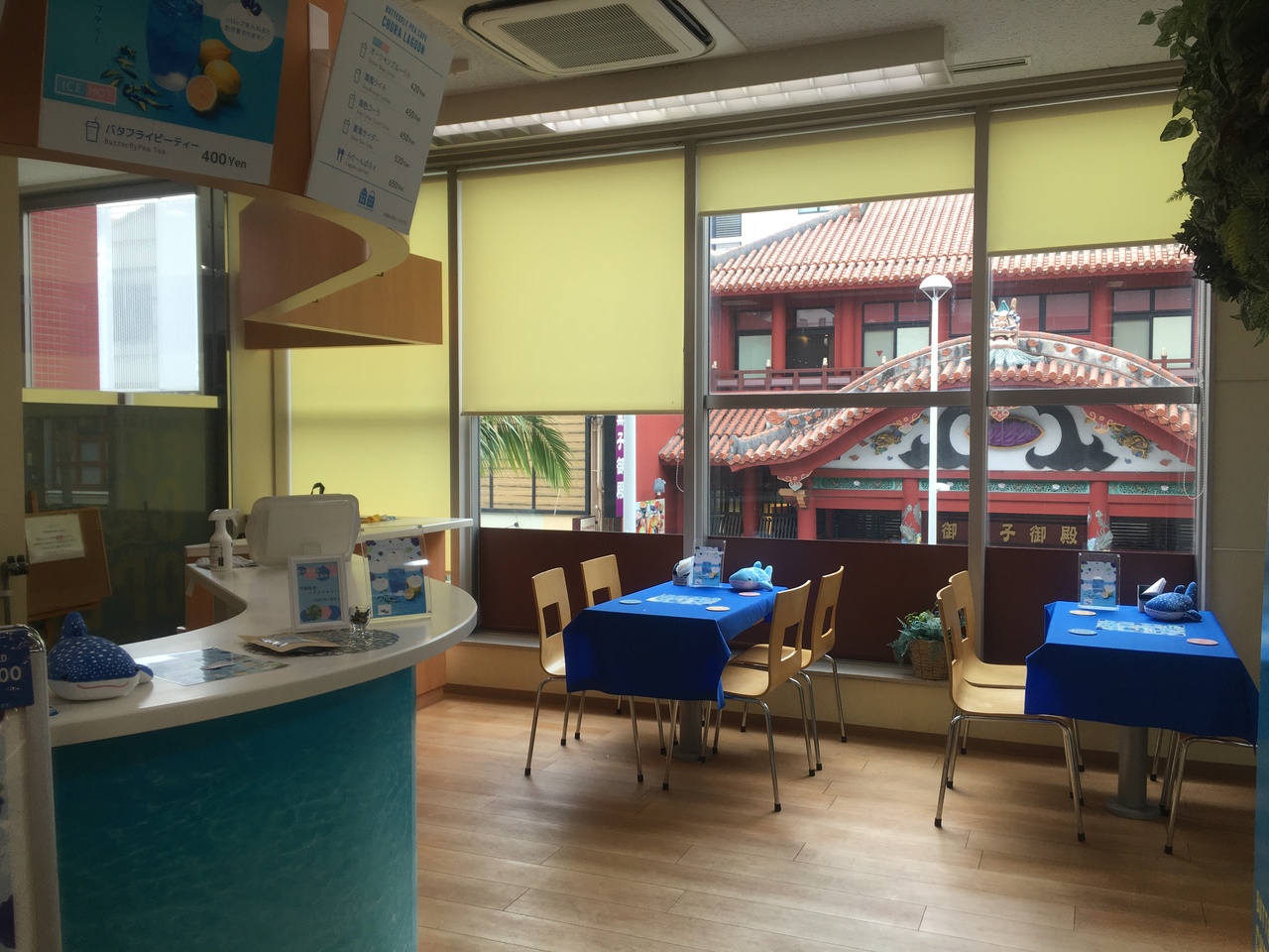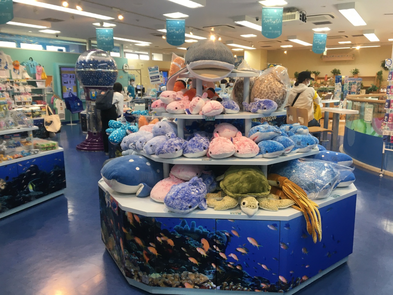 ゆいレール「県庁前駅」から徒歩で5分ほどです。「国際通り」を入ってすぐの「わしたショップ」の2階にあります。美ら海水族館限定商品のぬいぐるみやマグネットなど販売しています。美ら海水族館や首里城の割引き入場券も購入できます。狭いながらカフェコーナーもあります。
