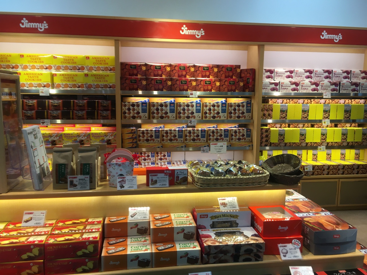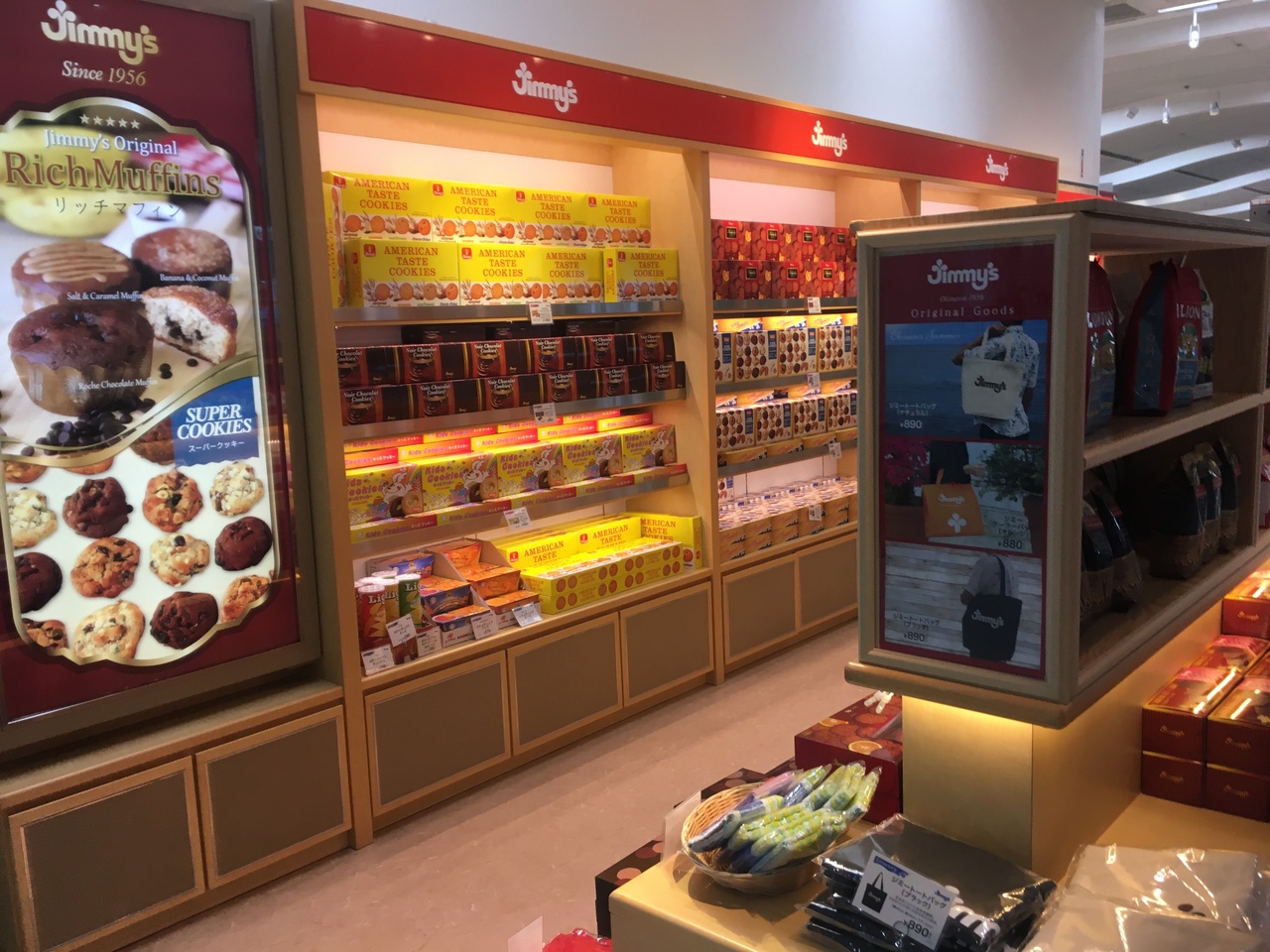 那覇空港ターミナル2階出発フロアにあります。初めて利用しました。創業者は日本人の稲盛さん、米軍基地で働いていたときのニックネーム「Jimmy’s」がブランド名になりました。試しにバナナとチョコチップのマフィンを飛行機で食べるバラで購入しました。レジは非接触のものでした。