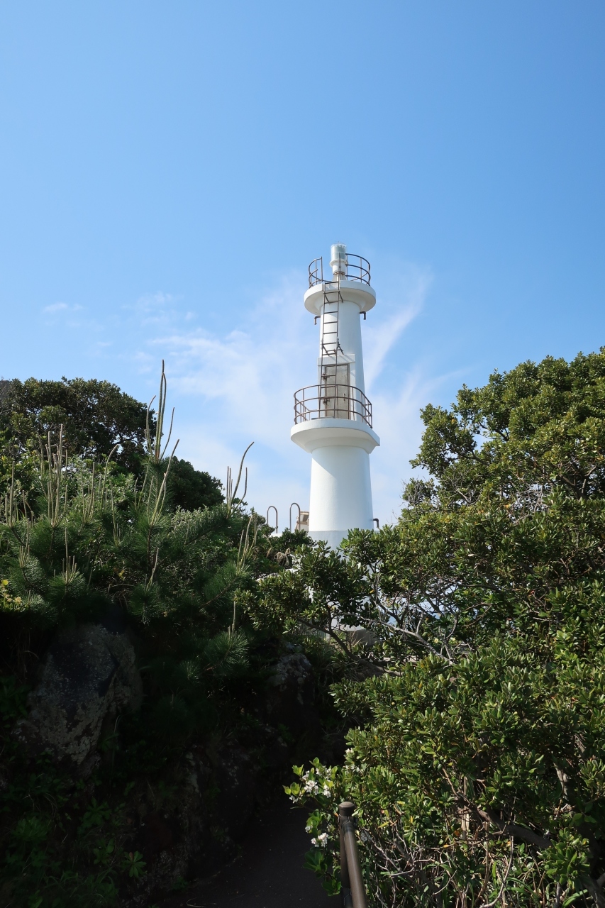 薩摩半島最南端、長崎鼻の岬に立つきれいな灯台です。バス停から降りて岬に降りて行くと、龍宮神社や浦島太郎像、ソテツの自生地などがあります。その先にきれいな白い灯台が立っています。ここからの眺めが最高です。美しい海と開聞岳の姿を一望できます。