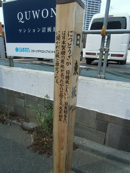 標識の説明によると、日糖坂ともいい、日東紡あるいは日本製糖の用地があったからと伝えられており、大正初年に開かれたと推定されるそうです。