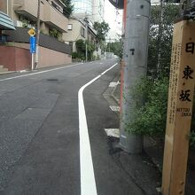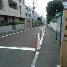 国立自然教育園の北側にあり、外苑西通りから、南東方向に登る坂道です。