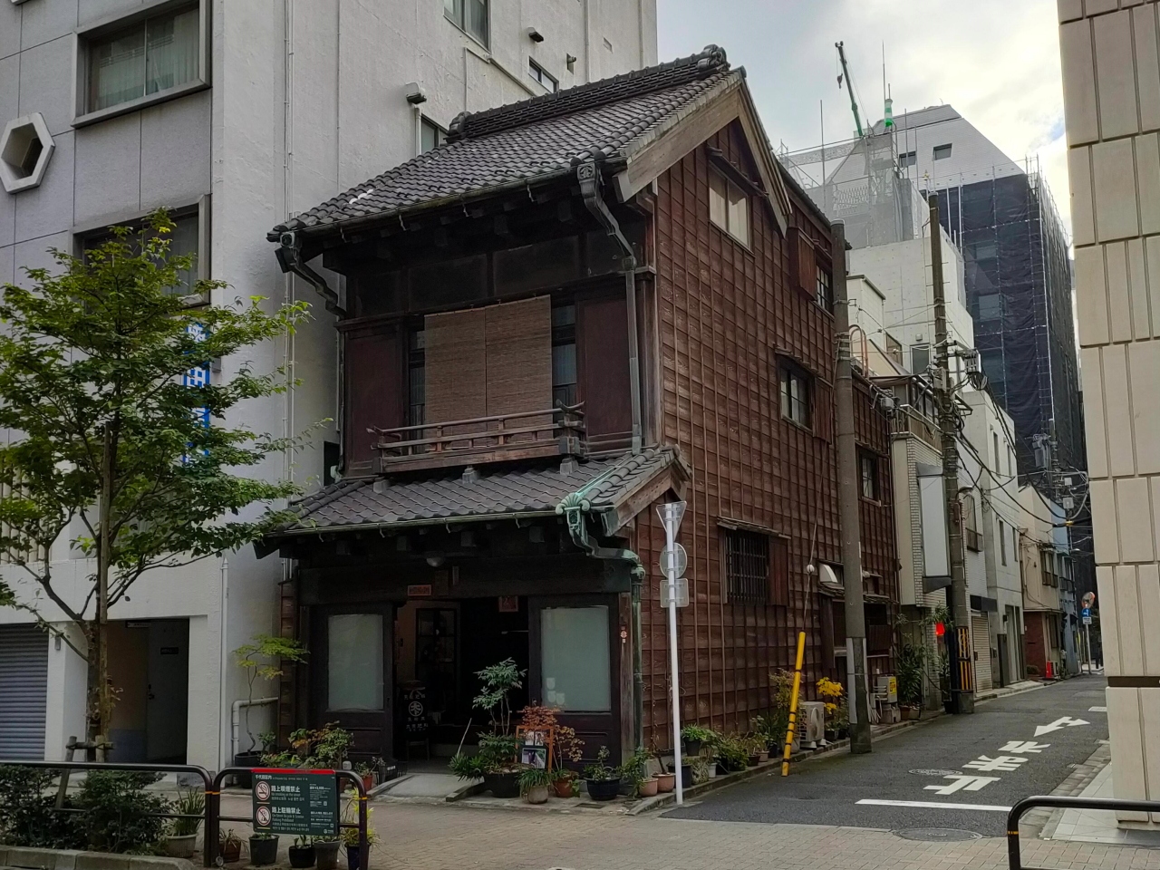 周囲をモダン建築に囲まれた、こぢんまりとした和風建築ですが、ひっそりとしており、知らなければ気づかずに通り過ぎてしまいそうになります。