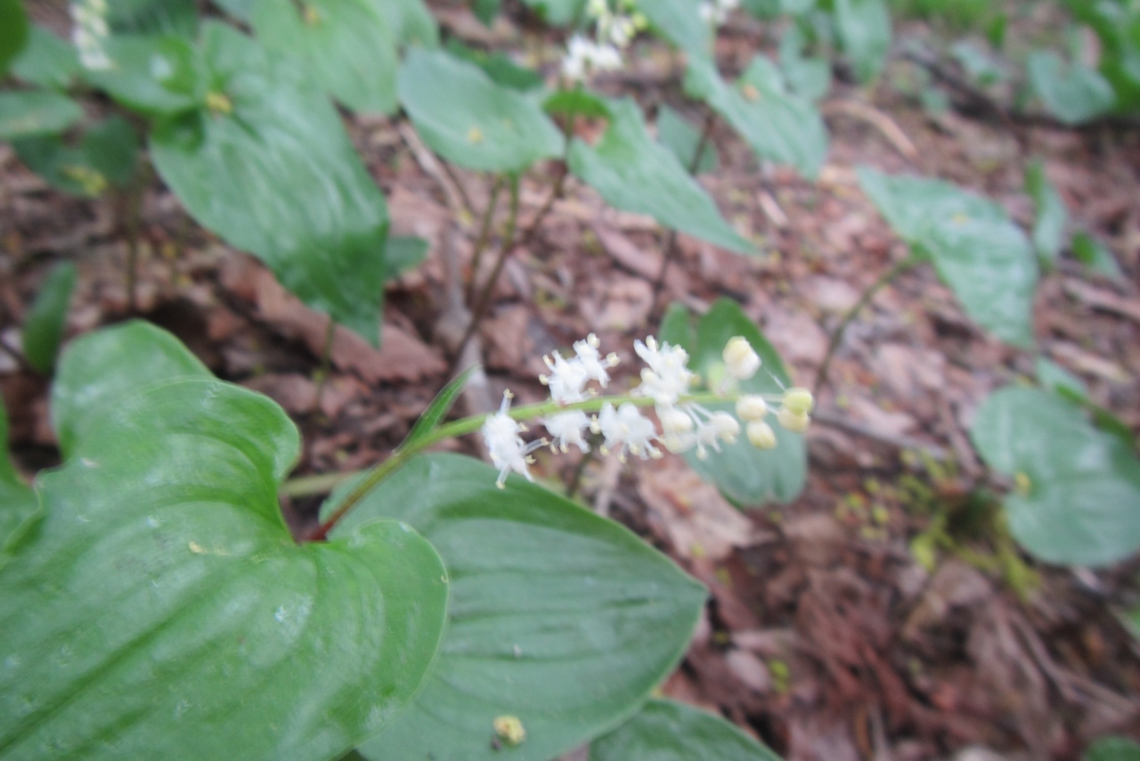 また、隣接する防風林の樹林下にはマイヅルソウが花をつけていました。