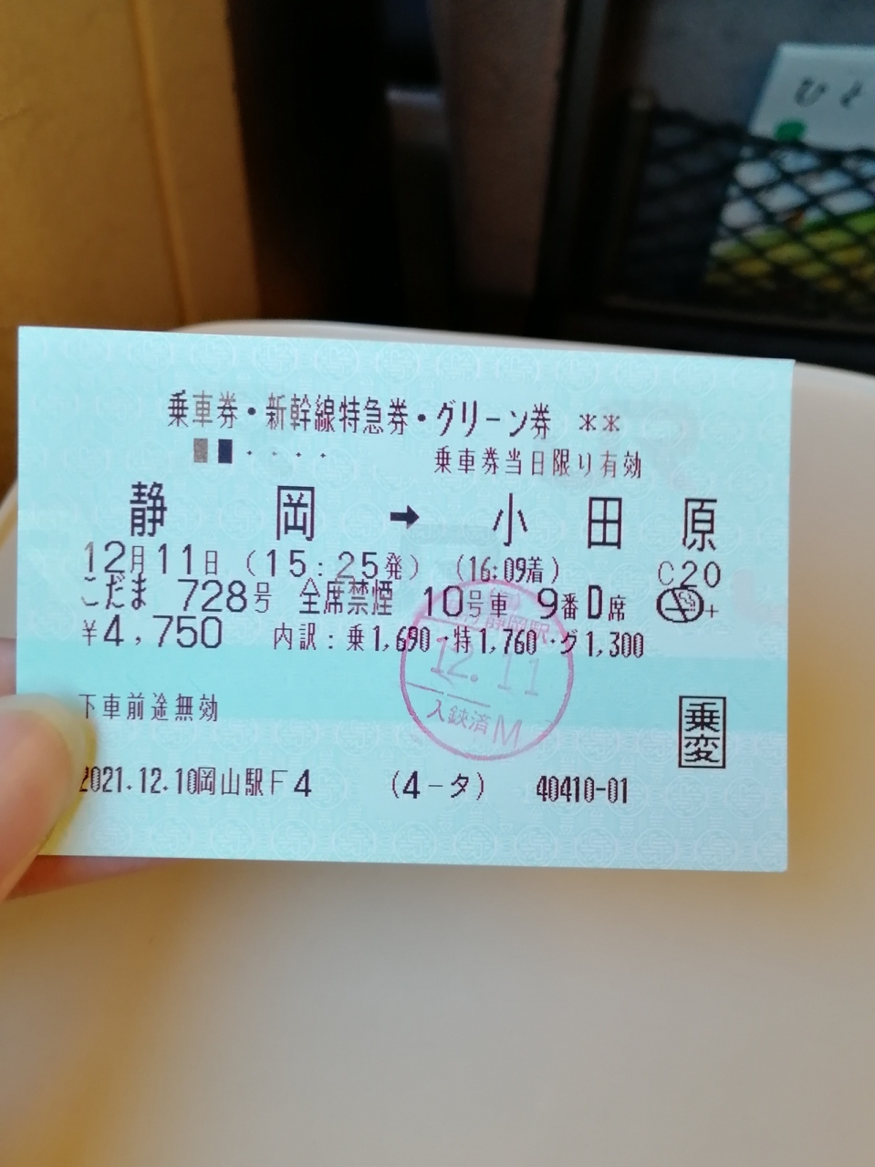 オレンジカードで買った切符を乗車変更して、こだま号のグリーン車にしてみたのですが、100kmまでなら指定席+770円支払うと変更できるのでまぁアリかなと思いました。