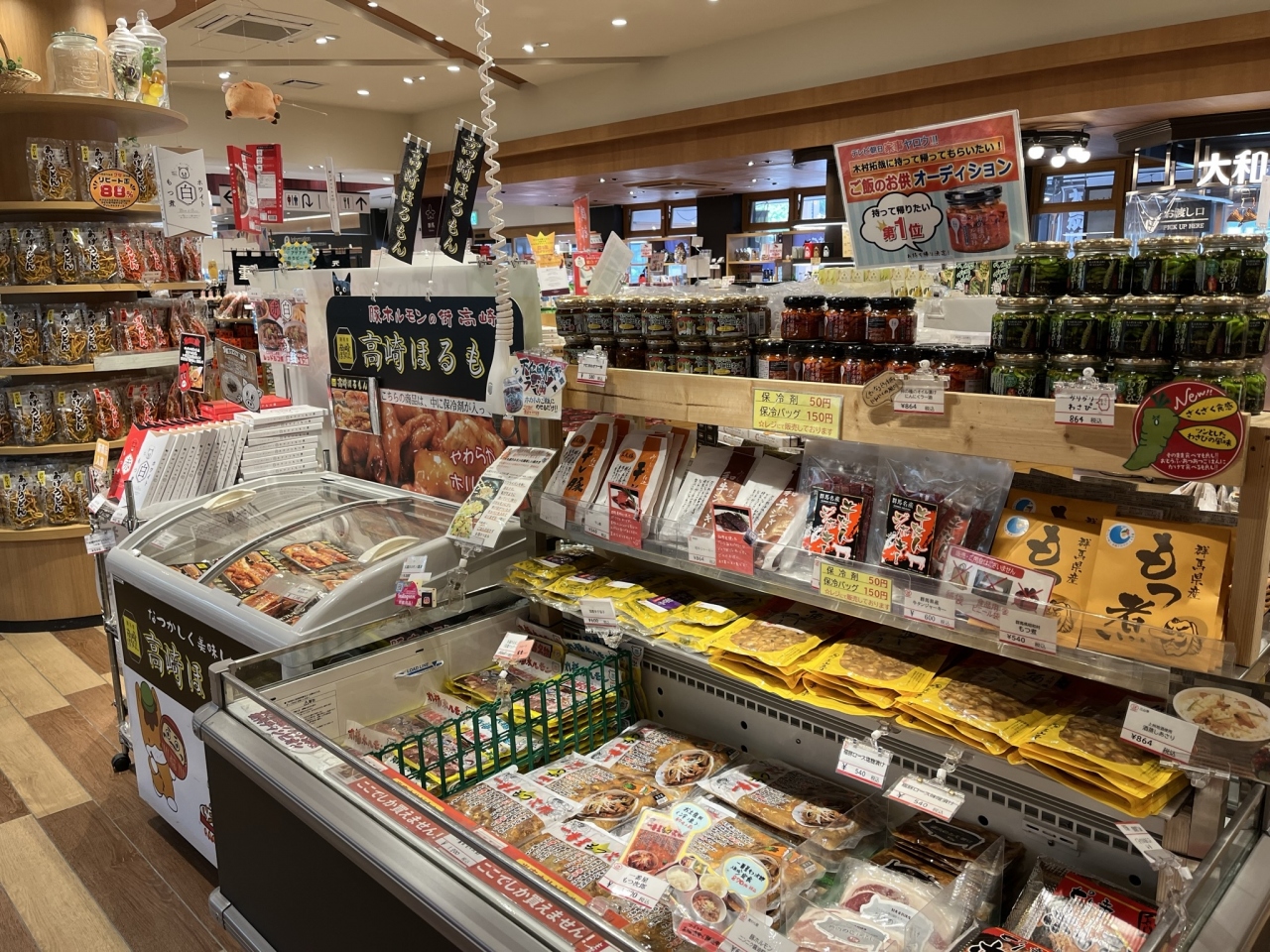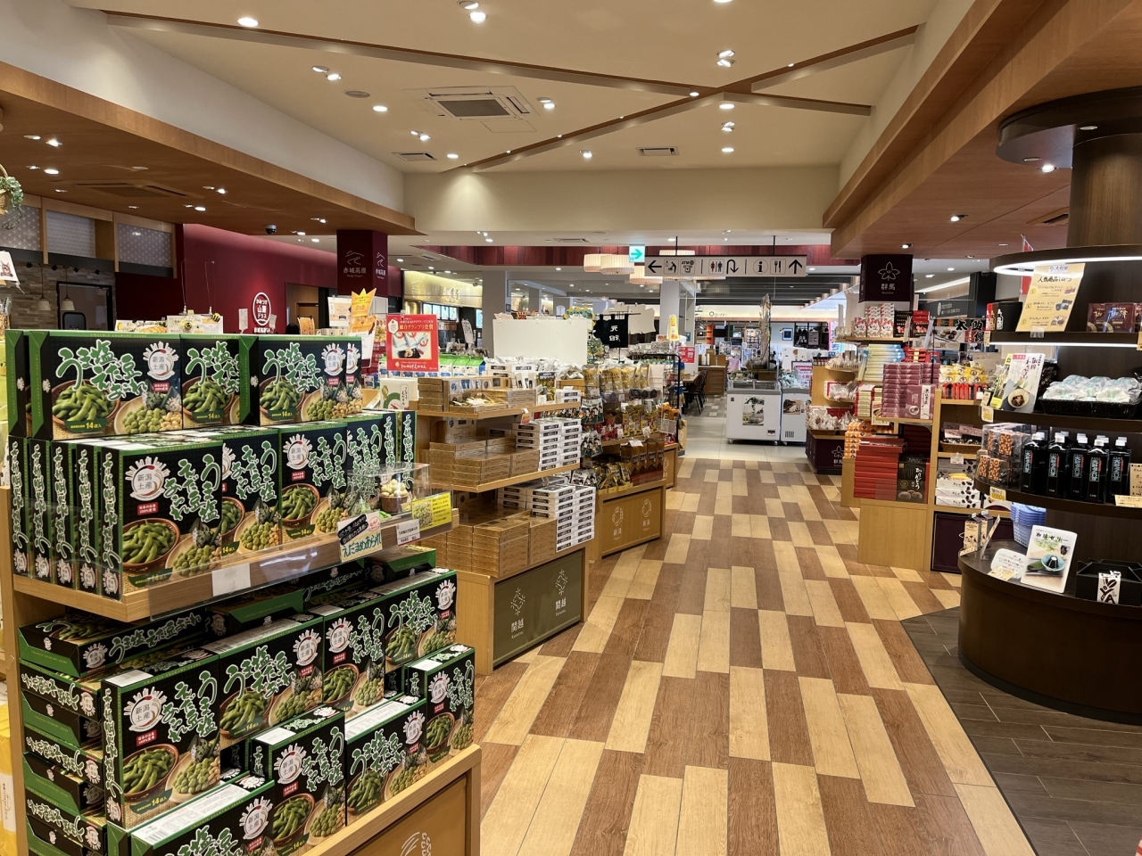 コンビニを併設したショッピングコーナーには地元上州の名産品やお菓子、乳製品などがたくさん並んでいました