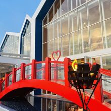 外に出ると、紅い橋が架かっていて 真ん中には ハート♡