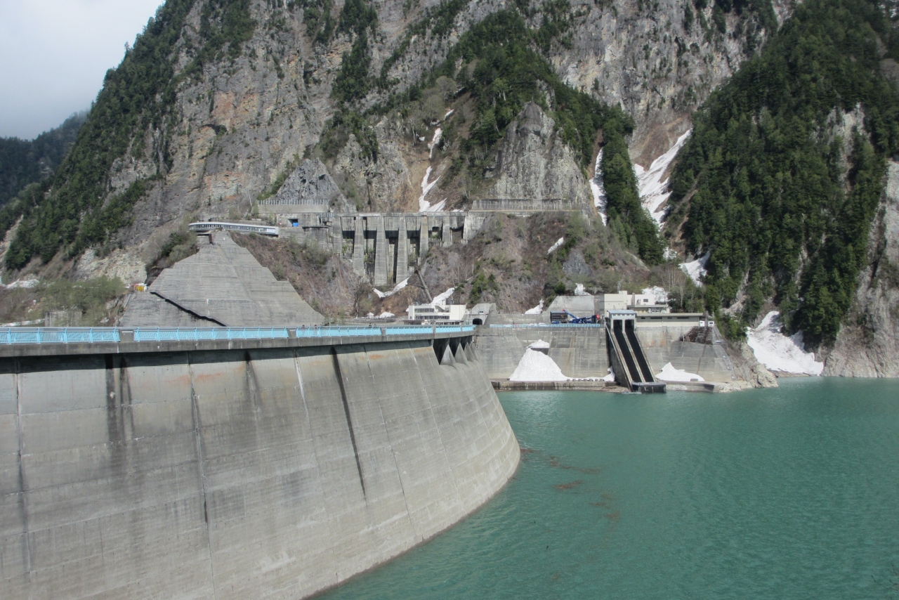関西の電力不足を解消するために、1956年から7年かけて造られたダムです。80mの破砕帯を突破するのに7ヶ月かかるなど、あまりに過酷な工事だったこともあり、後に石原裕次郎主演で映画化されたダムとしても知られています。現在は黒部立山アルペンルートの一部として、6月から10月にかけて豪快な放水を見たり、黒部湖で遊覧船に乗ったり、展望台からダムや湖を眺めたりすることができます。周辺には殉職者の慰霊碑や工事の激しさを表したモニュメント、建設の様子を映像やパネルて紹介したスポットがあり、当時を偲ぶことができます。