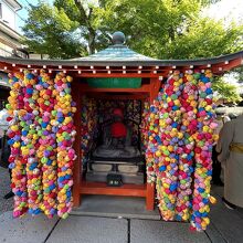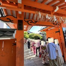 カラフルな「くくり猿」たちをバックに お着物を着て お写真 撮影する人が たくさんいました。