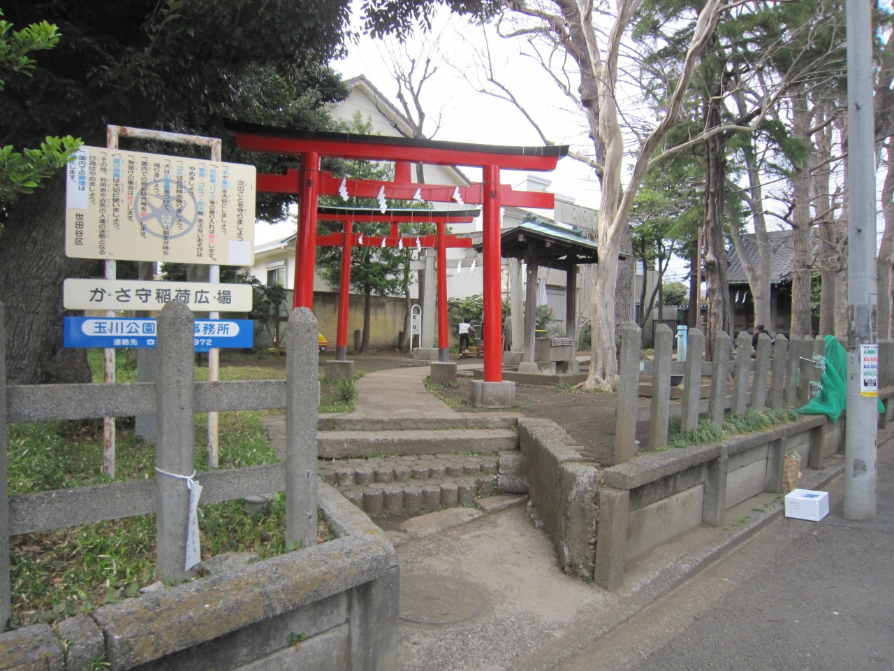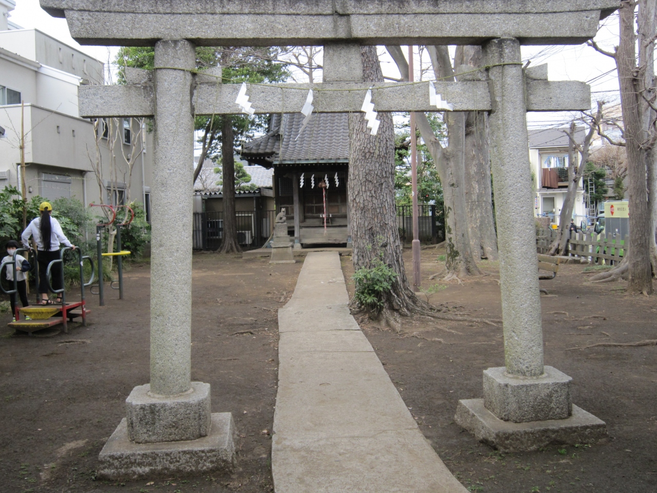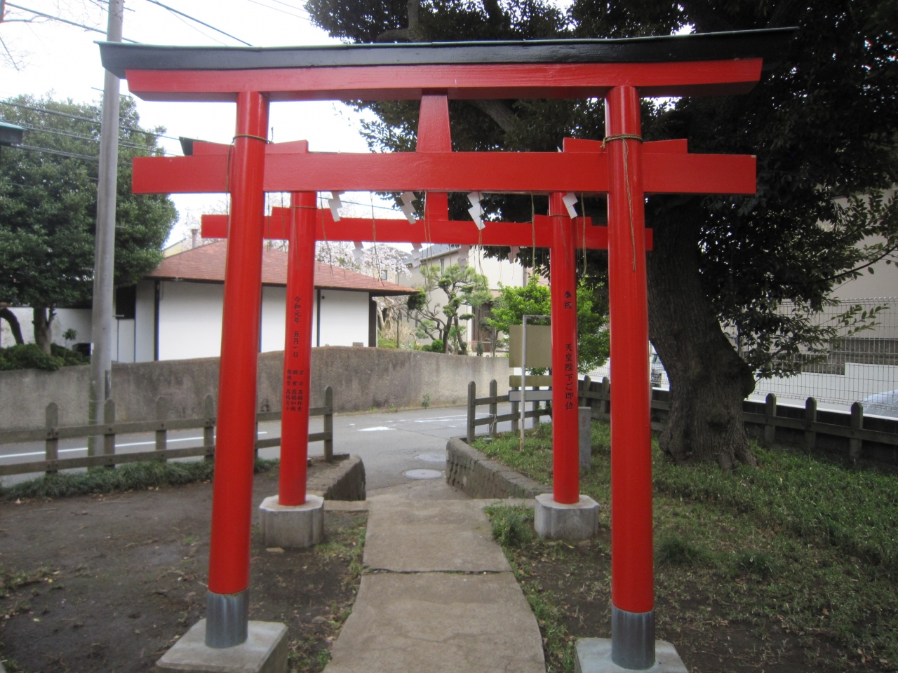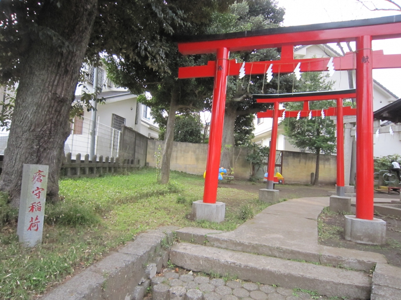 創建年代は不明、江戸時代に病平癒の社として参拝者が多かったようです。瘡守と付く神社は全国に多くあります。松本市にもありました。地元の人たちが病気全快を祈った所なのでしょう。敷地面積は余り広くはないですが、真っ赤な一の鳥居、二の鳥居、そして石の鳥居があり、その先に小さなやや古めかしい社殿があります。一の鳥居には令和元年五月、天皇陛下ご即位とあり新しいものと思われます。社殿の扉には頑丈な鎖と南京錠が設置されていました。住宅地の中ですが、夜間は人通りが少ないのでしょう。樹齢百有余年の欅が目につき、健康遊具では子供たちが遊んでいました。