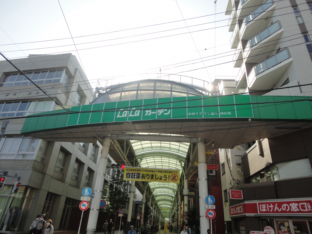 JR赤羽駅の東口からまっすぐ東へ歩くと、こちらのアーケード商店街に辿り着きます。アーケードの天井は高く、商店街の通りも広くて、とても歩きやすかったです。