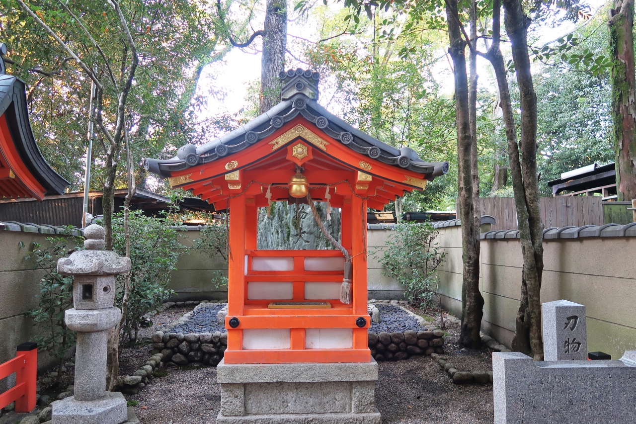 古都京都は、刃物発祥の地でもあるらしく、八坂神社本殿の裏手には、刃物神社がありました。一つ目の鍛冶の神様、天目一箇神が祀られていました。奥には刃物大神と彫られた大きな岩が置かれていて、いかにも御利益がありそうです。コロナ苦を断ち切り、新たな未来が切り開かれるように、参拝しました。