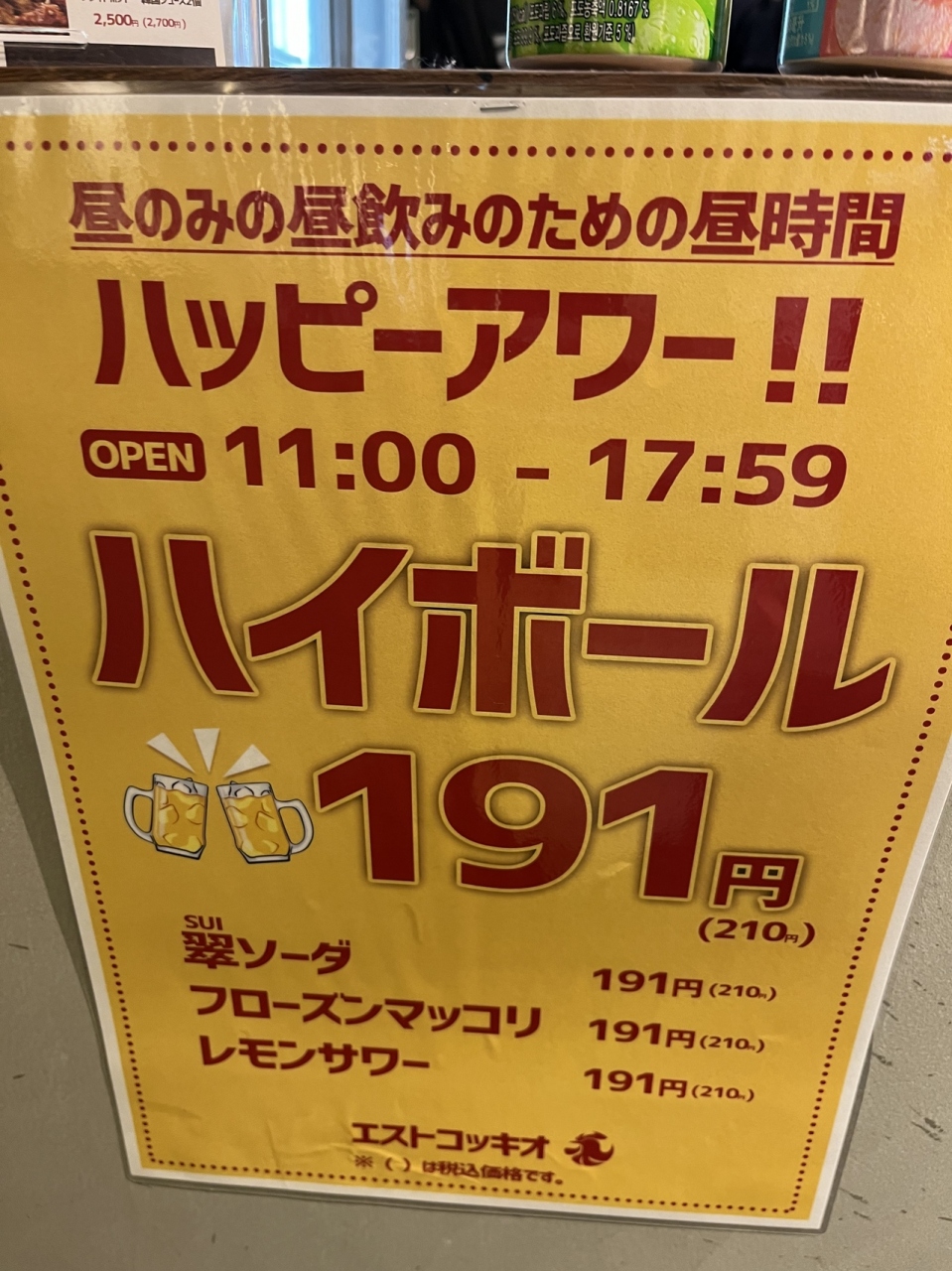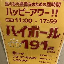 ハッピーアワー11:00~17:59 昼のみの昼飲みのための昼時間