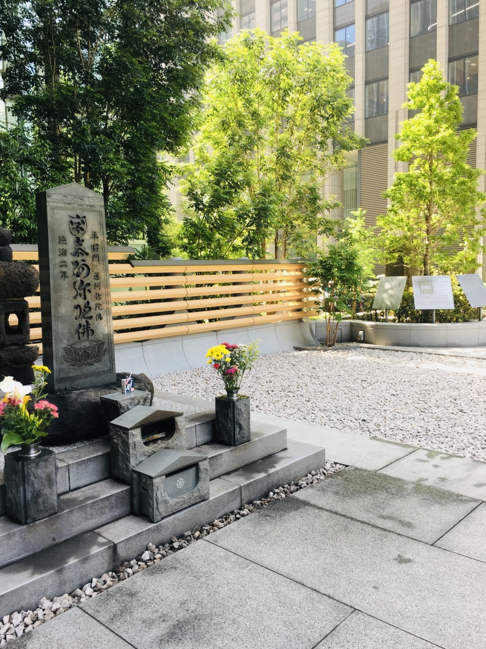 ビルの隙間にありましたが綺麗に整備されていました。10分ぐらい滞在していましたが、1分に一人はお参りに来て、絶えず人がいる場所で信仰の深さを感じました。石段の上にお墓があり、花が添えられています。説明の看板も二つもある旧跡です。