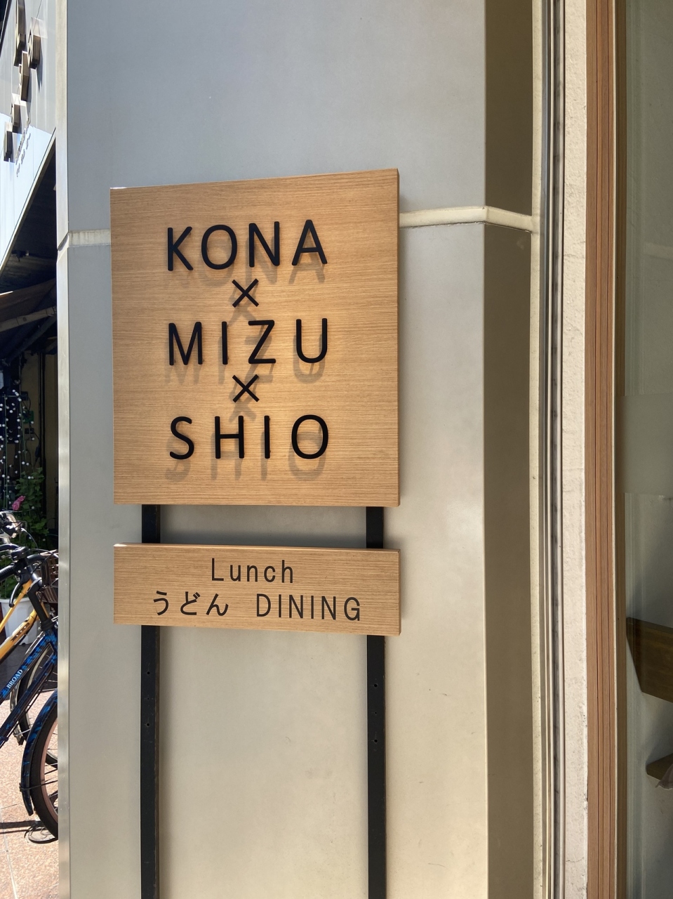中央通り、大阪市中央区役所近くにある お昼時はいつも行列ができている人気店です。券売機で、券を買って注文するシステムです。3種類から海老天ぷらとまいたけ天ぷらの冷やかけうどん(¥1,200)をセレクトしました。店内は、おうどん屋さんというよりカフェのようにおしゃれです。