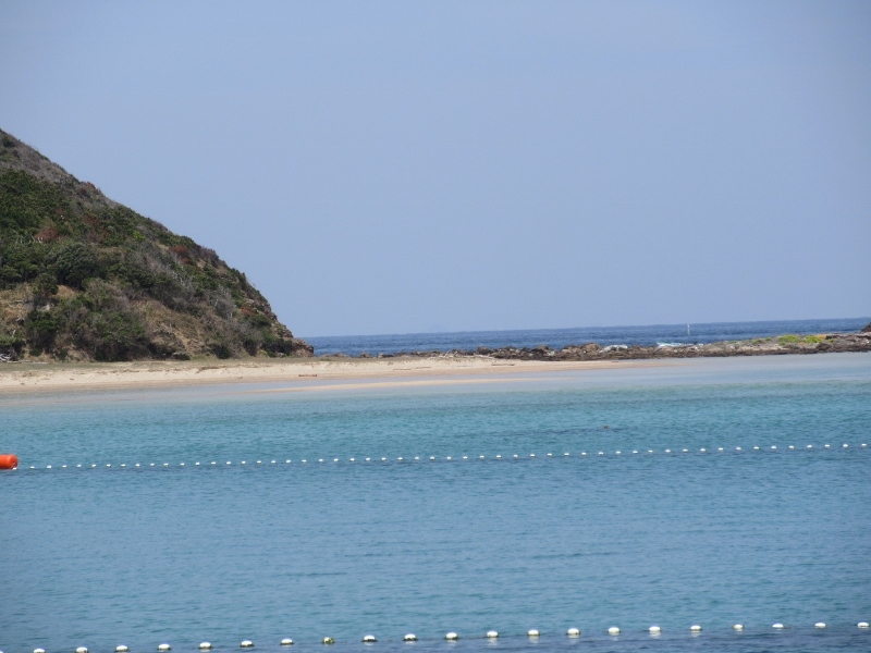 辰の島遊覧船に乗っていたら見えました。夏ではないので海水浴客はいませんが、とてもきれいな海岸でした。青い海に白い砂で、このような場所で風に吹かれてのんびりできたら、さぞ気分良いだろうと思いました。見るだけだったのが残念です。
