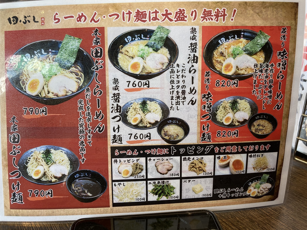 麺の大盛りが無料ですので、がっつり派の方も満足できると思います。