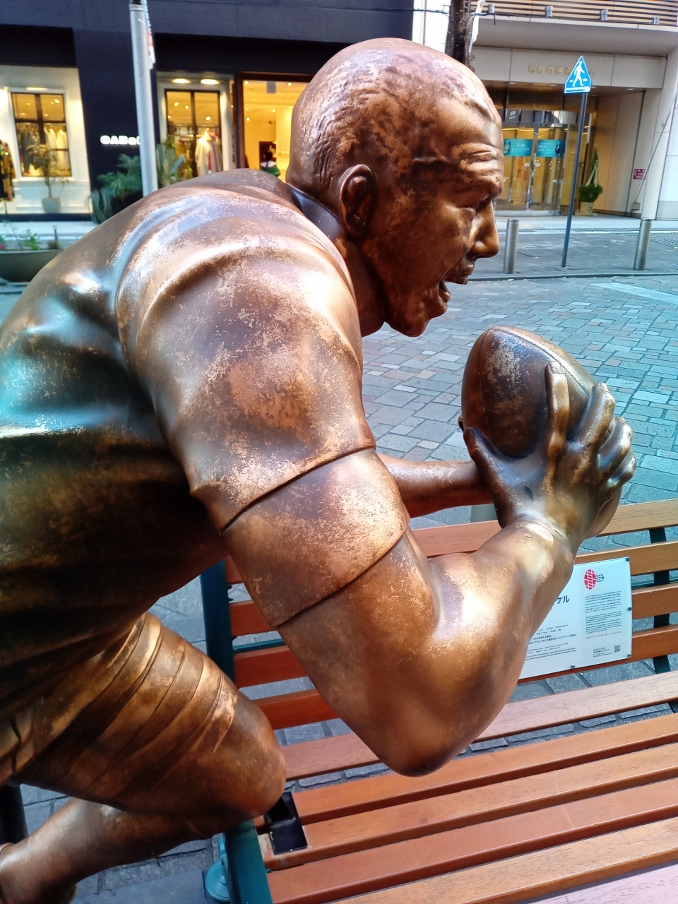 東京 丸の内の「丸の内仲通り」には、数多くの芸術作品が点在していて、「丸の内ストリートギャラリー」となっています。その中でも、ラグビー日本代表のキャプテンを務められた「リーチマイケル氏のベンチ」があり、とても人気があります。いつもは写真に収めるのも少し難しいのですが、珍しく収めることが出来ました。