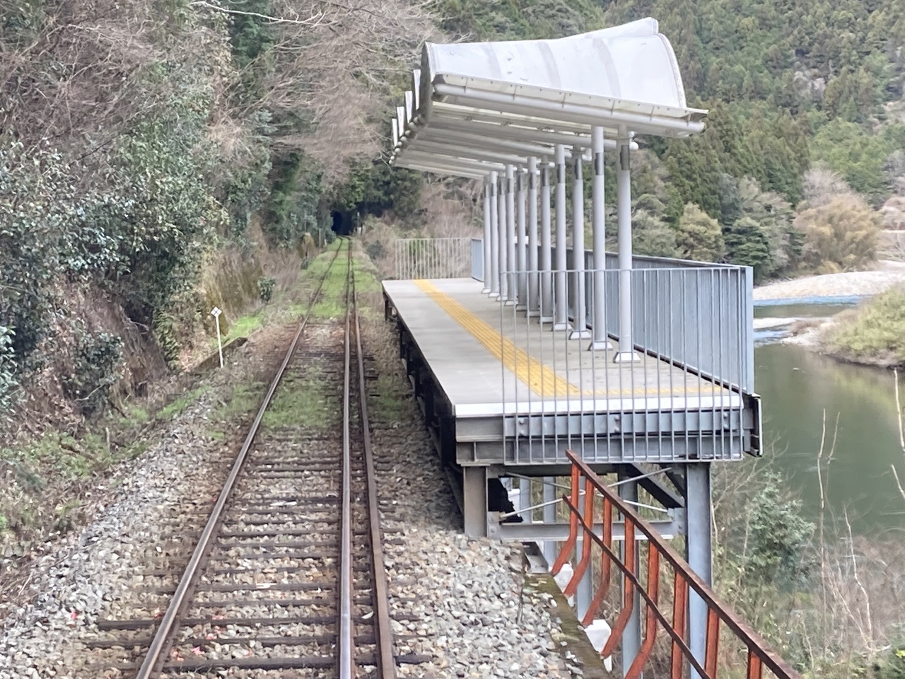 もともとは、岩国から山口線の島根県日原を結ぶ陰陽連絡線として計画された旧国鉄の岩日線の既開通部分で、第二次特定地方交通線に選定されたことこら1987年に第三セクターの錦川鉄道に移管、錦川清流線となりました。ちなみに、岩日北線と呼ぼれた未完成区間については、4kmを超える六日市トンネルも貫通し、路盤も完成していましたが、1980年に建設が凍結。この区間は「岩日北線記念公園」として整備され、「とことこトレイン」という遊覧車が走っています。
