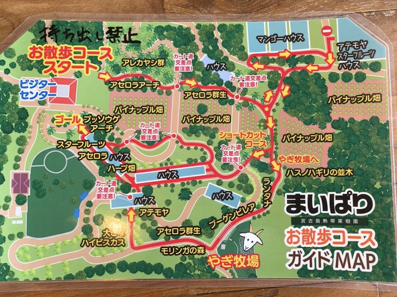 ちなみに、まいぱりでは、お散歩コースと、カートに乗ってのトロピカルガイドツアーの2種類があります。