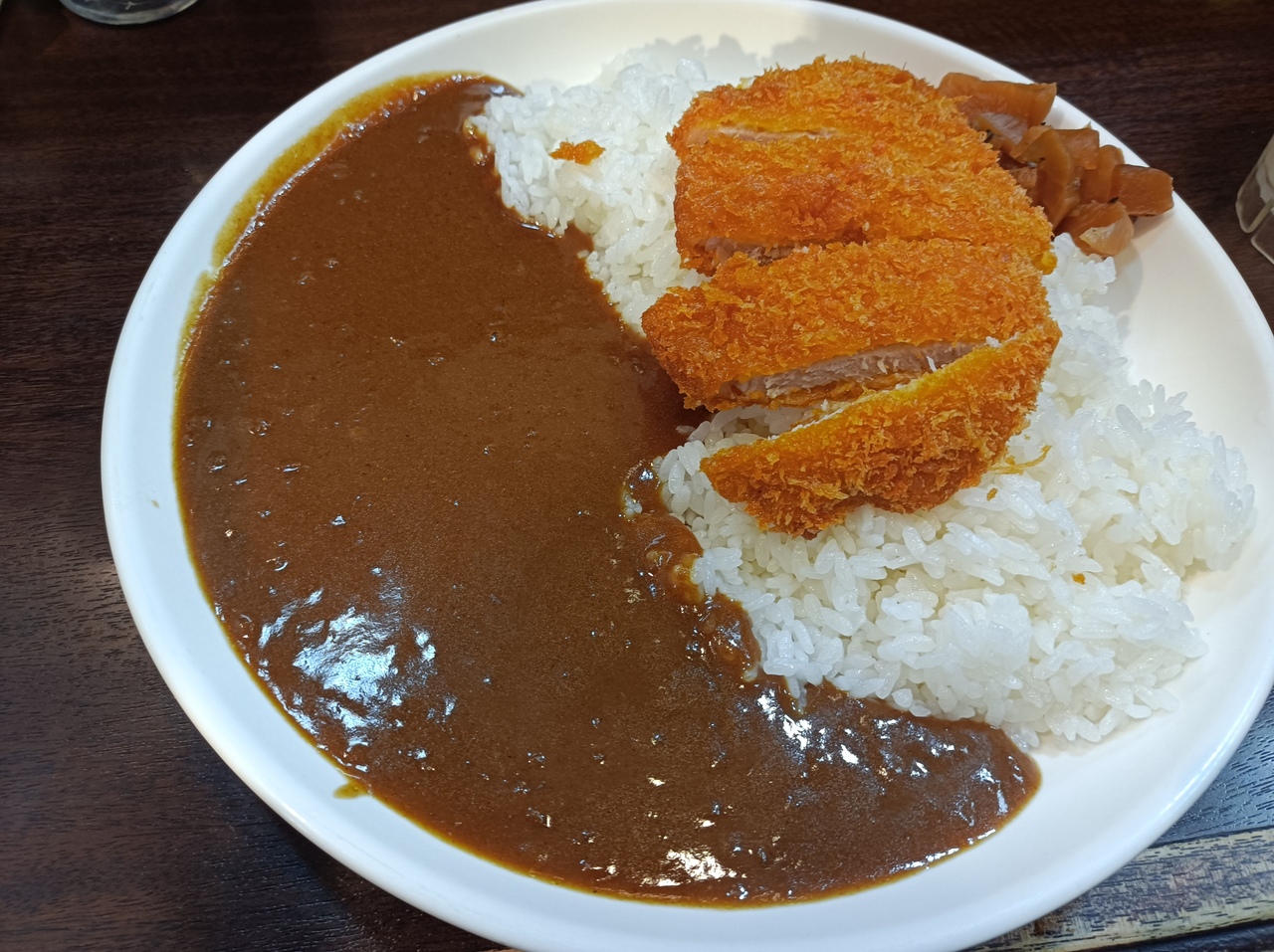 後楽園駅ビル内にあるカレー屋さんです。10席程のカウンター店舗で最初に券売機で食券を買うシステムです。肝心のお味ですが、万人受けする温かい味です。辛さは中辛と辛口の二段階から選択出来ます。今回はカツカレー中辛を頂きました。