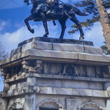 政宗公の銅像は、地震で傷ついたようで、補修されている最中でした。