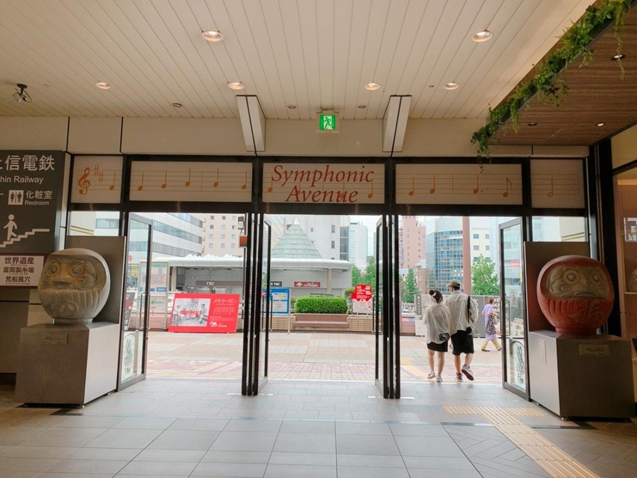 高崎は、昔からだるまが有名で、ここ最近はだるまで町おこし?!ってくらいの勢いでオシャレだるまなどが駅構内のお店や街中にあふれていますが、ここ高崎駅にも目立つだるまが置かれれています! JR高崎駅の西口の入口扉の前に、左右対になって、赤だるまと白だるまの石像が置かれています。