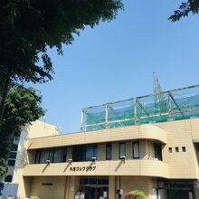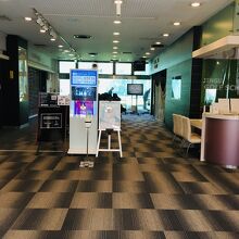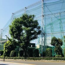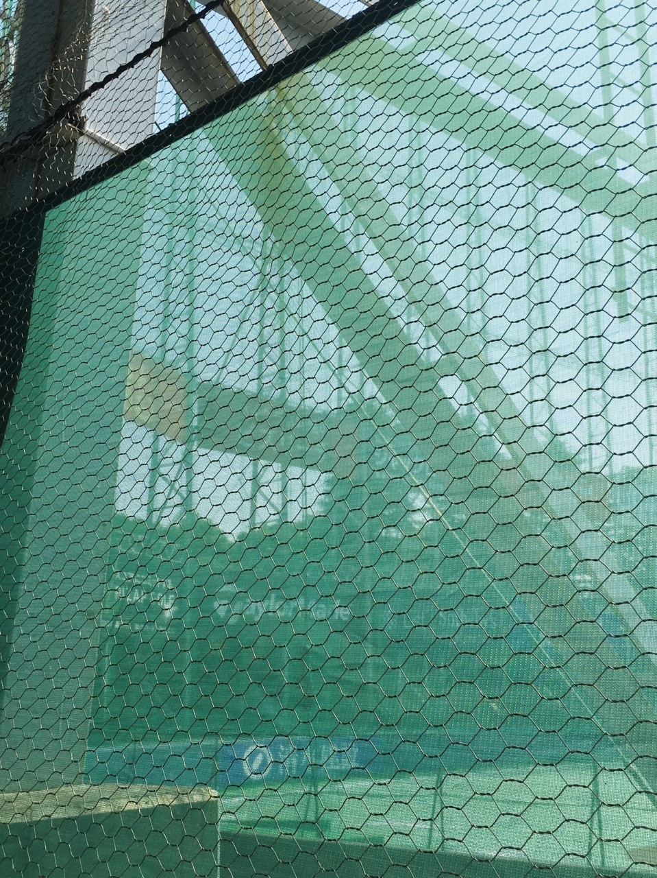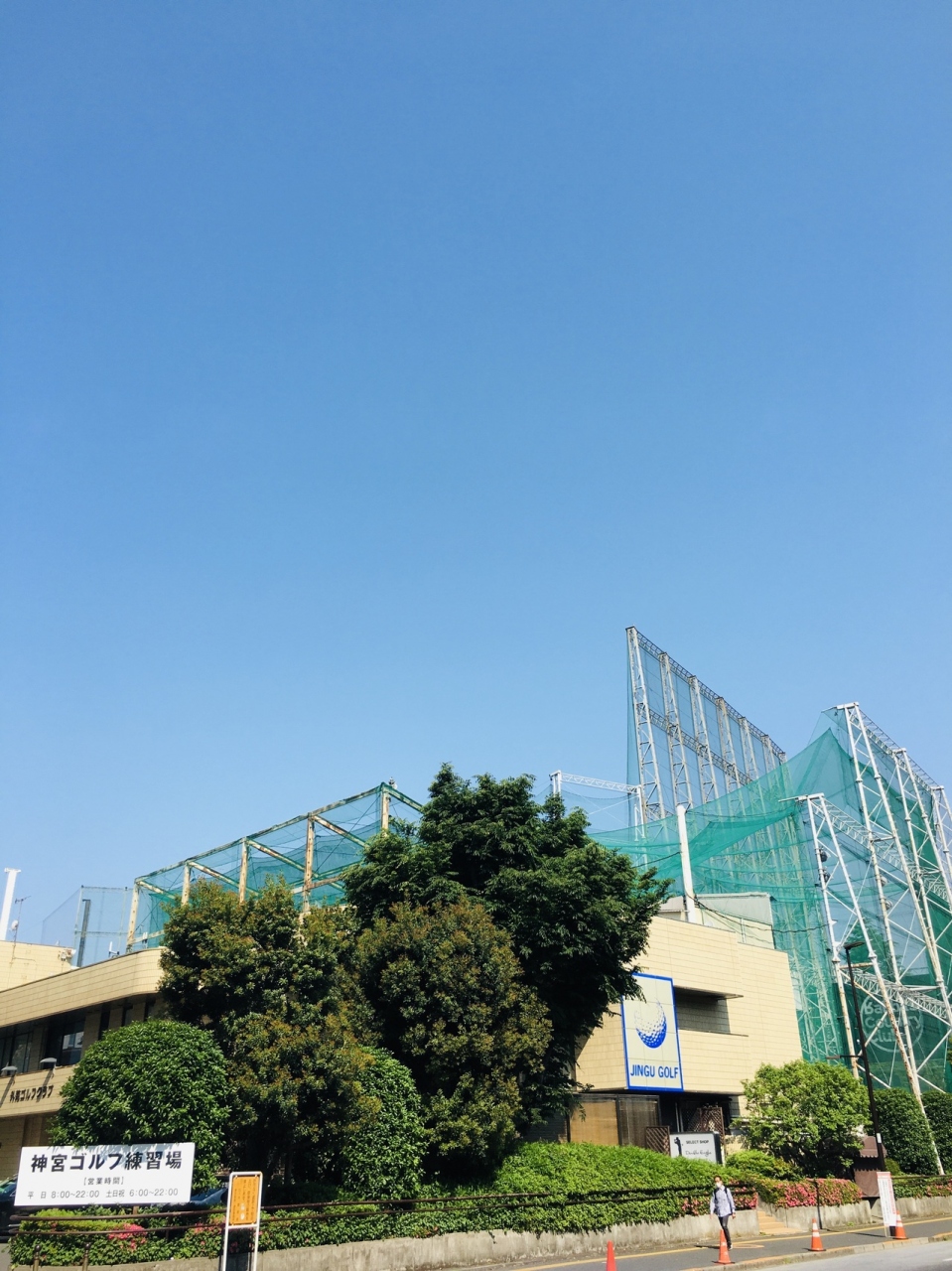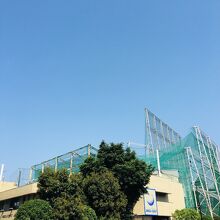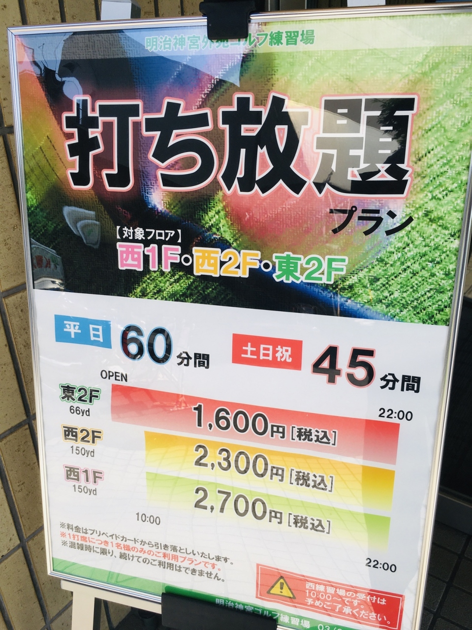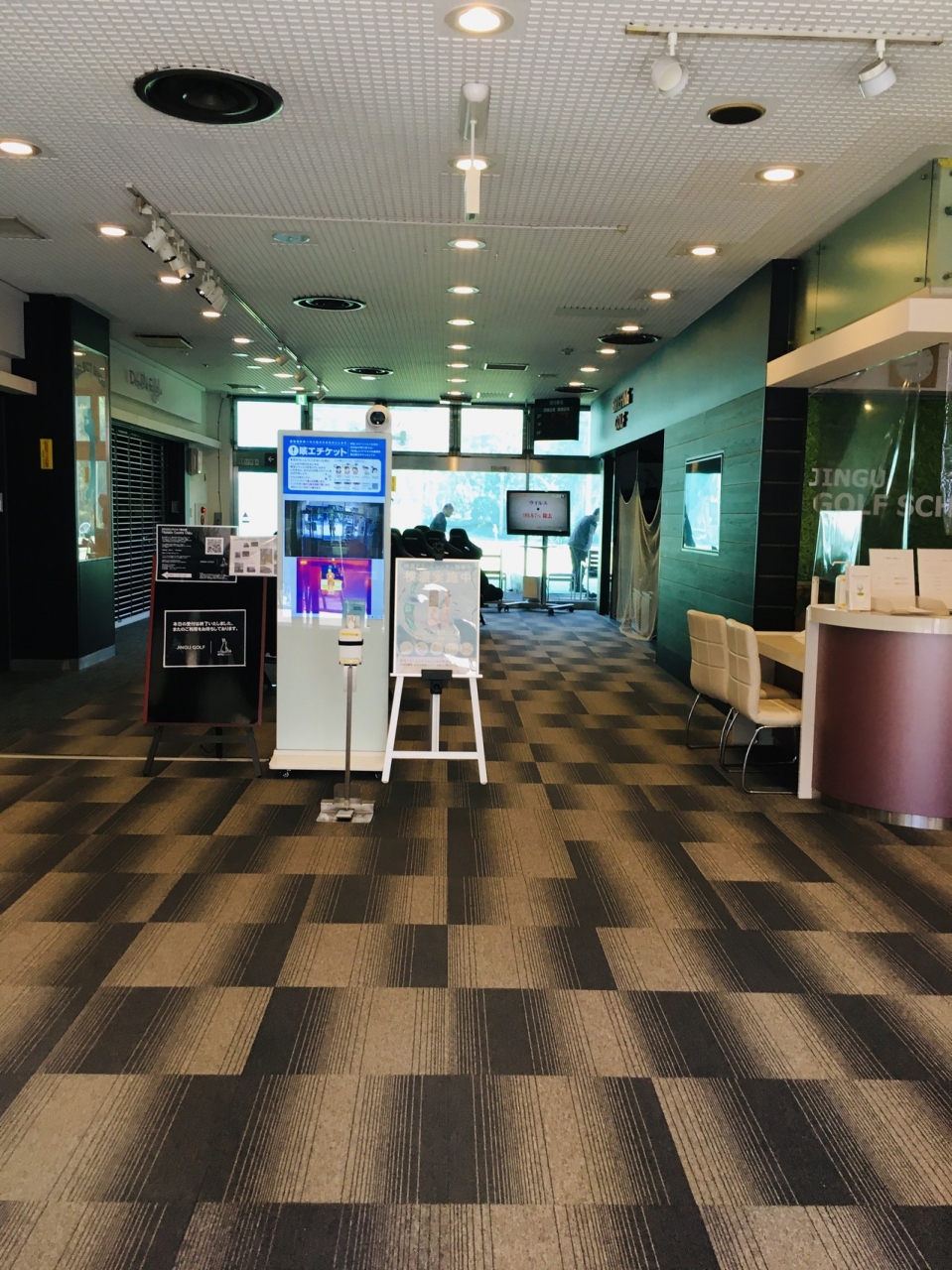 廻りを歩いているとゴルフ球を打つ音が聞こえてきました。広いゴルフ打ちぱなし場で、打ち放題プランもある2階階建ての建物です。館内に入ると左側に受付があり、直ぐ近くまでですゴルフ打ちをしているのが見えました。