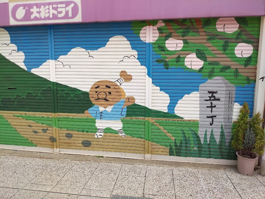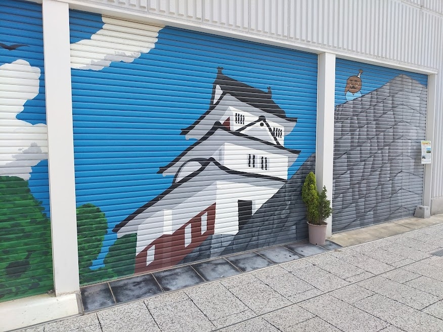 でも、こちらのシャッターには、カラフルでとてもきれいな絵が描かれていました。