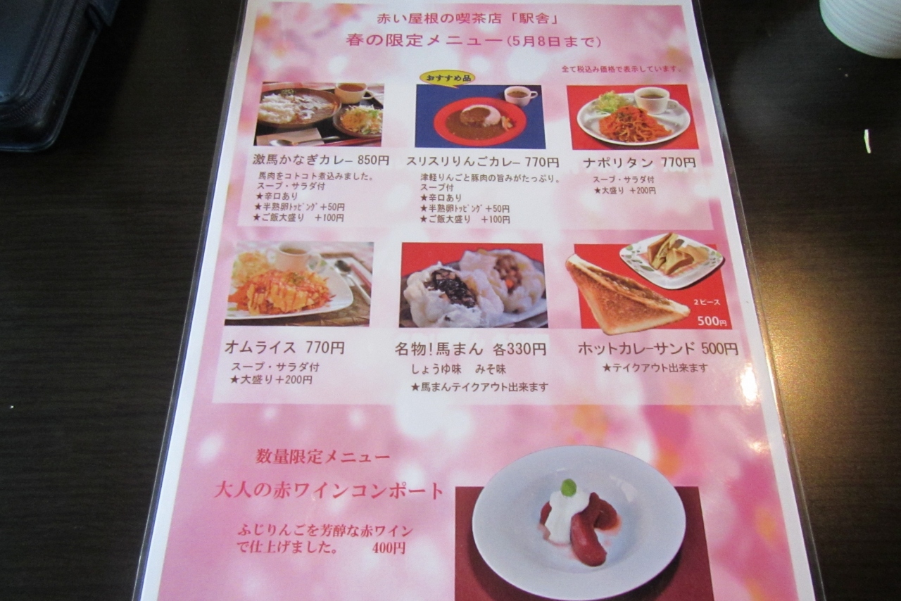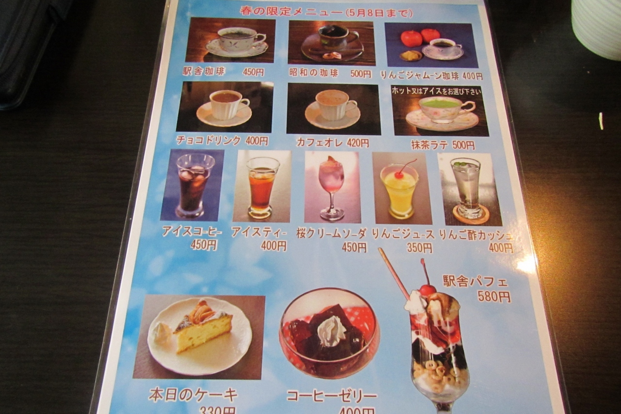 可愛らしい赤屋根の建物で、店内に入ってもレトロな雰囲気で、芦野公園散策で疲れた足を癒しながら、たまに発着する列車の様子を眺めでのんびりと時間を過ごすのも良いと思いました。