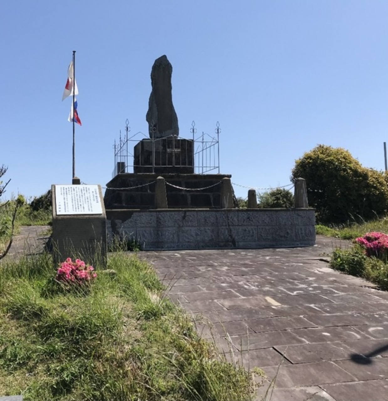 今から100年以上の戦いですが、碑の周辺は綺麗に掃除されていて、日本国旗とロシア国旗が掲げてありました。