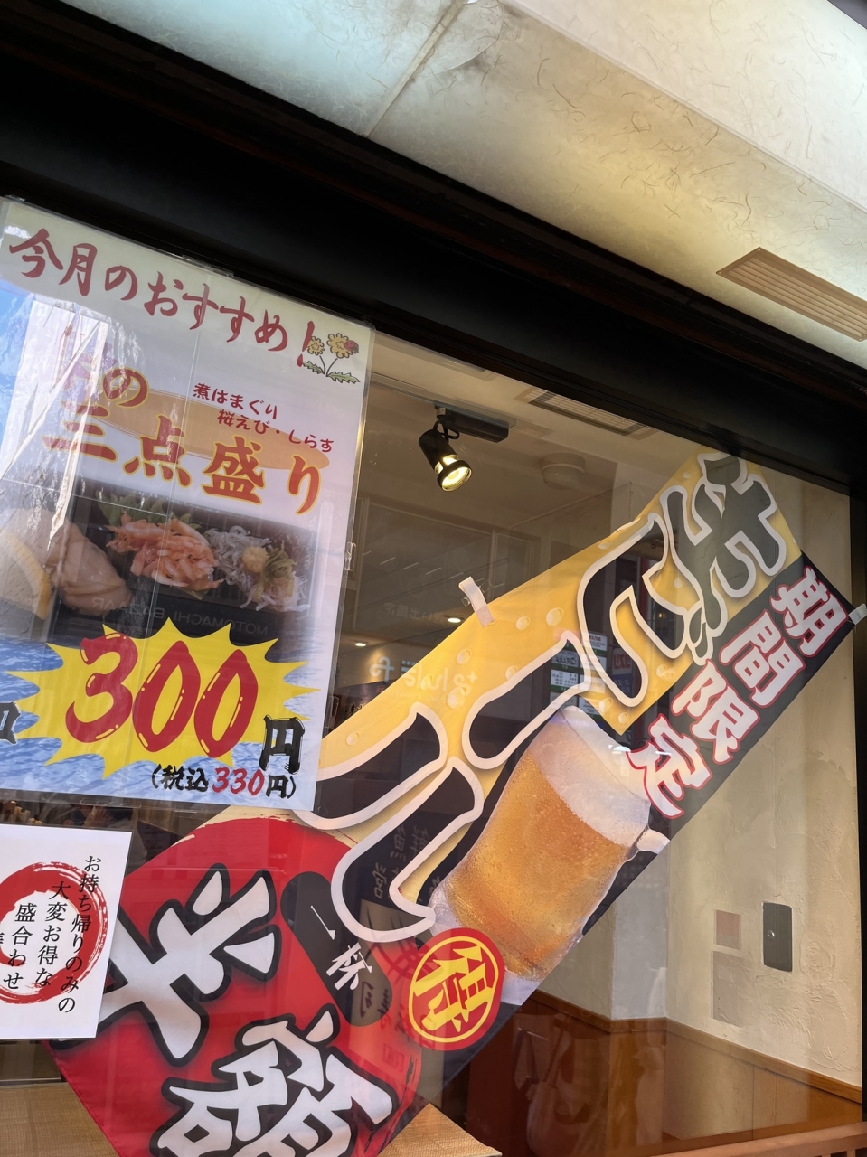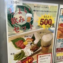 この時 「生ビール一杯」 半額 でした。期間限定です。