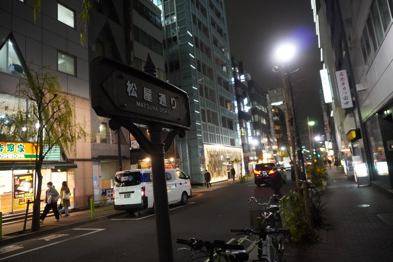 松屋通りは、銀座中央通りと交差する通り。晴海通りの一本日本橋側で、名前のもととなっている松屋の西側を通っています。築地の方に向かうほど場末の感じも出てくるので、吉野家なんかもありました。そういう意味ではちょっと格差もある通りです。