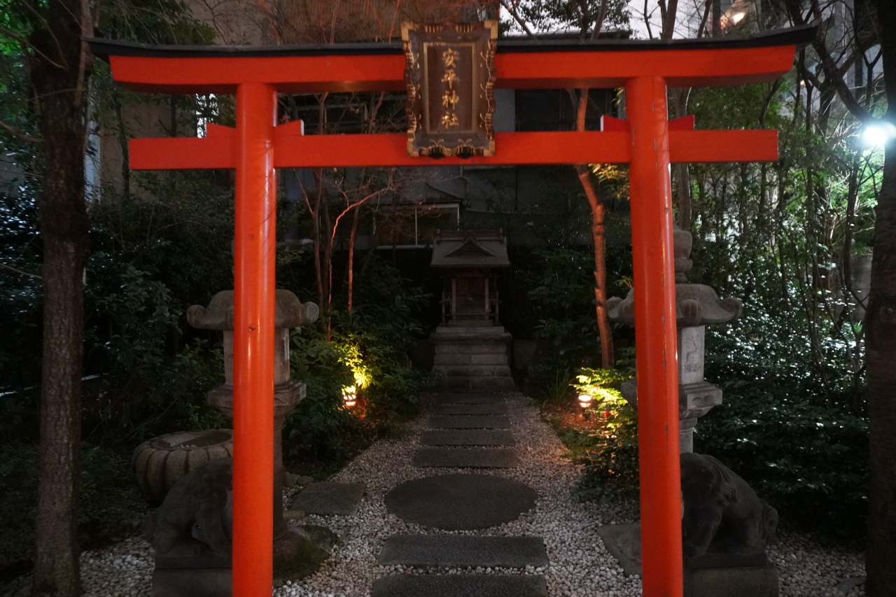 安平神社は、銀座タワーというマンションみたいなビルの脇。江戸時代、ここには新庄美濃守の屋敷があり、屋敷神として祀られた稲荷神社だったものがその後、明治時代になって、万安樓という料亭が創業し、敷地内で再び安平神社として祀られたよう。時代が変わっても、この地というかこの敷地にあって。稲荷神社って一度祀るとなかなかしぶといものなんですね。