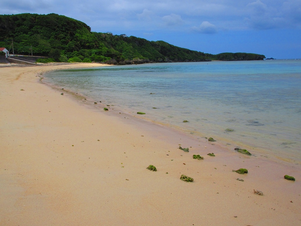 白い砂浜が美しい和泊町のビーチ。駐車場からビーチまでは目の前にあるので便利です。更衣室やシャワー・トイレ・キャンプ場が整備されています。あと周囲を山と海に囲まれてるからかスマホの電波が入りづらいです。
