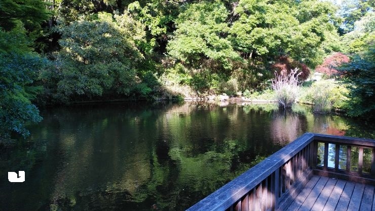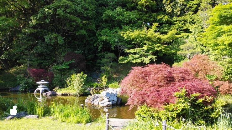 園内には日本庭園が整備されており、池が設けられ落ち着いた空間だった。あまり大きな庭園ではないが、散策のついでに立ち寄るのも良いと感じた。