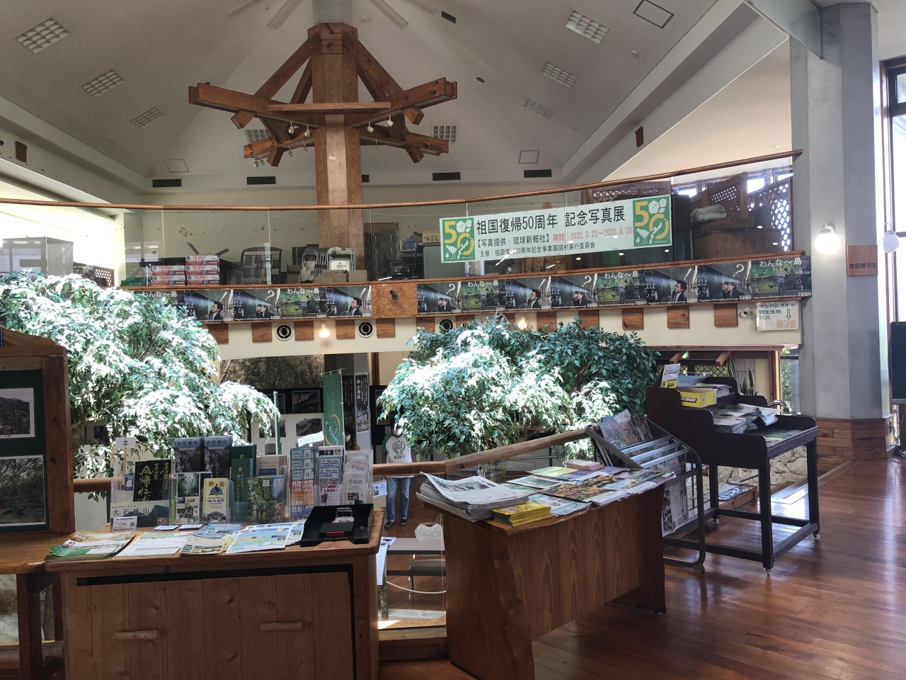 レストランのほかにフードコート的な横並びのお店ではラーメン他府ファストフードが楽しめます。ハンバーガー専門店など一通りのお店がありました。お土産コーナーの奥には展示施設があり沖縄復帰50年に関する資料が展示されていました。