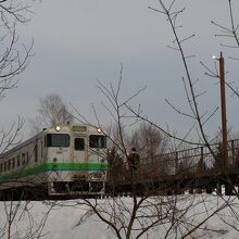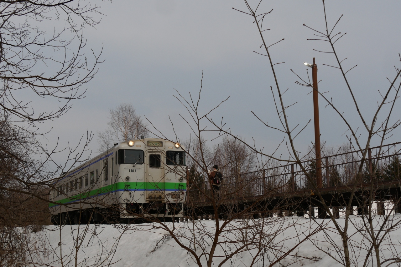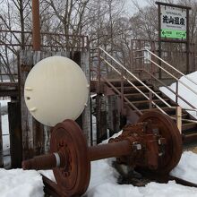 道路からホームは見えるものの、行き方がわからず、結局大回りしてこの牧場の中から行けました。