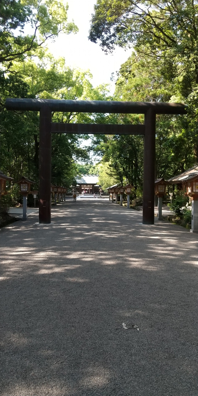 都農から宮崎市内に入り、広いといわれる宮崎神宮の無料で広大な参拝者用駐車場を探しました。南からアクセスすればわかりやすいですが、北からの方は要注意です。長い参道を通って手水場で清めてから本殿で参拝です。