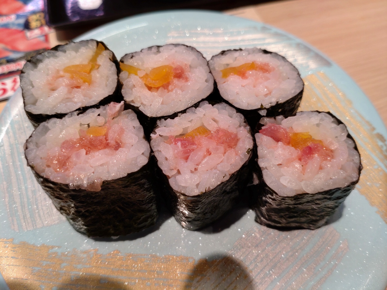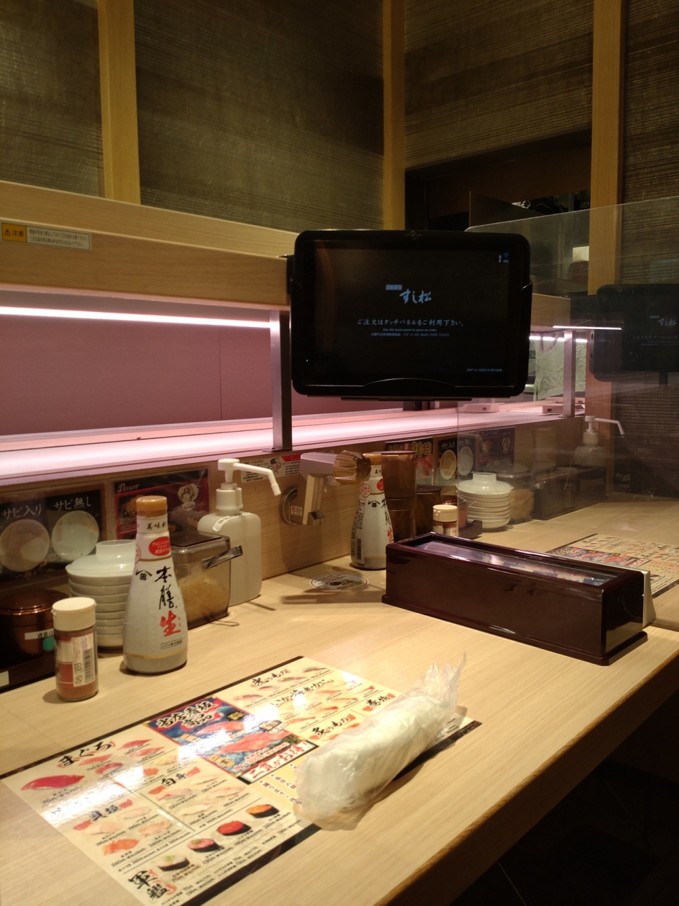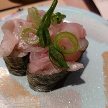 回転寿司店としては珍しくお寿司を1貫ずつ頼めるのがありがたく、いろいろな種類のお寿司を楽しめるのは嬉しい。マクロは1貫70円、2貫130円と、他店とそう変わらないが、冷凍ながらも質は悪くないものだった。ただ、お寿司をレーン取ると、いちいちタブレットの確認のボタンを押なくてはならないのは面倒だった。