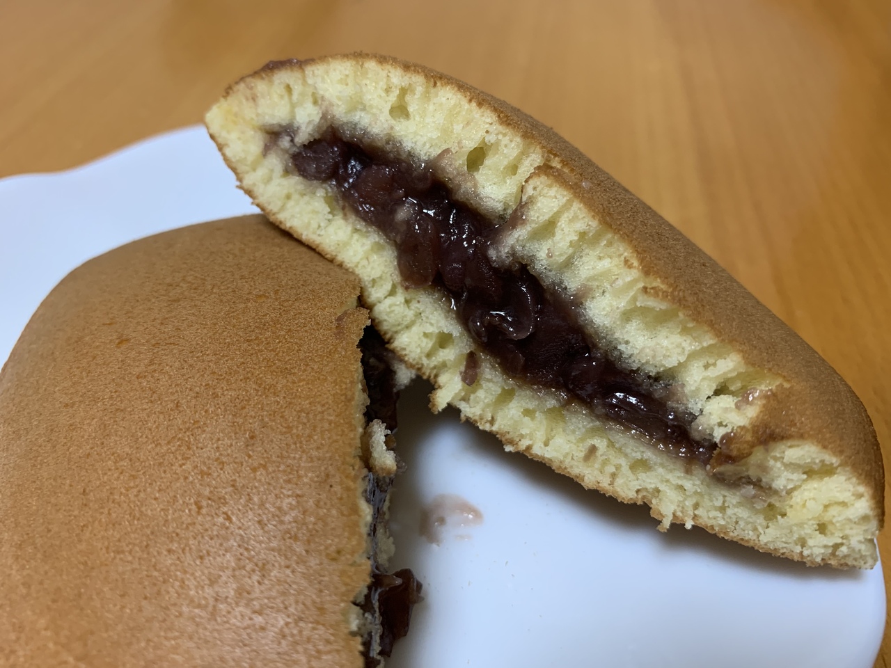 この感じの餡子のどら焼きは初めて食べました。