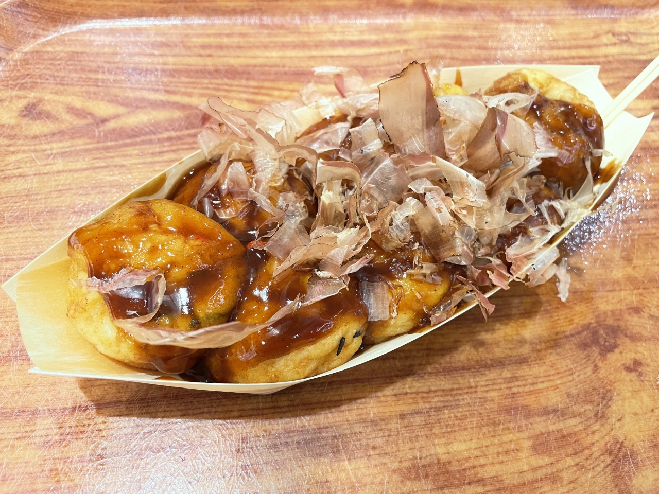 阪急西宮ガーデンズのフードコートにあるたこ焼き屋さんです。小腹が空いたのでちょうど良さそうと思い利用しました。たこ焼きは4種類あってノーマルにしました。並んでいるとまず個数を聞かれ、レジでソースなどを選択するシステムです。たこ焼きは皮がそれ程固くなく中身はとろとろ、出来立て熱々で美味しかったです。1個が結構な大きさなので、かなり食べ応えがありました。