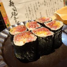 シャリ少な目の小ぶりで上品なお寿司をいただきました。ウニは軍艦が定番ですが、ウニの握りが斬新でした。お寿司はどれも丁寧な仕事ぶりを感じさせるものばかりで美味でした。