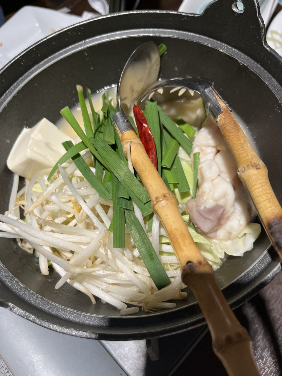 「ねぎま」と「蒸し鶏と豆富胡麻サラダ」「もつ鍋」が 美味しくかったなぁ〜