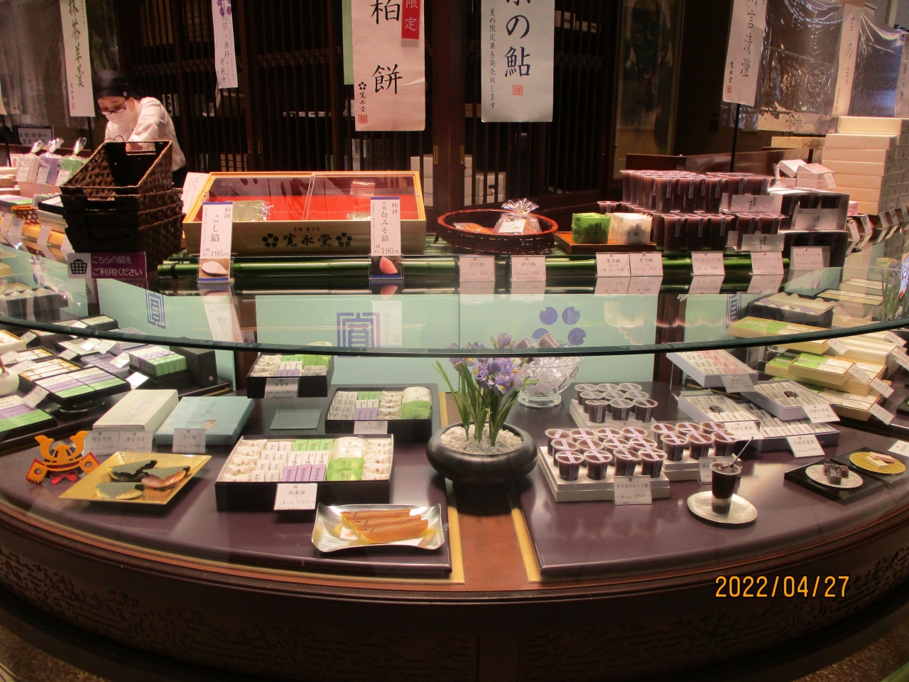 東久留米のイオンモールの中で、ちょっと由緒あるという独特の雰囲気の和菓子屋さんを見つけました。本店は京都だそうです。立派な紳士が御贈答用なのか品定めをしていました。京都の老舗の和菓子屋さんですが、お値段はお手頃でした。